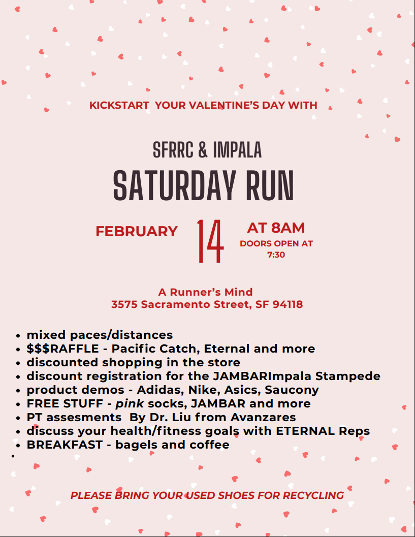Kickstart your Valentine's Day with SFRRC & IMPALA at our 2/14 Saturday Run!